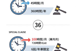 しかし、実際の企業活動では、繁忙期や突発的な業務により、どうしても法定労働時間を超えて働く必要が生じることがあります。そこで登場するのが36協定です。